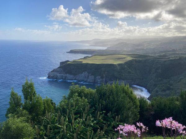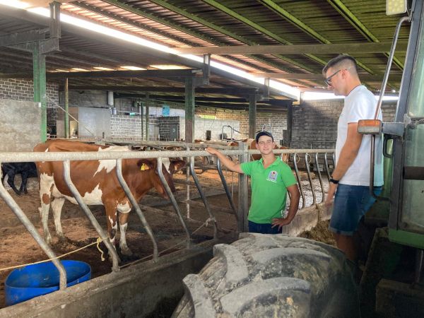 Am Mäntig 23. Septämber styge 36 ungernähmigslustegi ehemalegi Schwängeler ds’Züri i Flüger u sy vouer Erwartige was üs uf der Insu Sao Miguel (Azoren) aus erwartet. Scho am Zyschtig bsueche mir mit üser Resieleitere Miriam Etter u mit em yheimische u ufgsteute Übersetzer Housi (Juan) e Wasserfau u derna e Betrieb mit 100 Chüe ime Loufstau u 60 Hektare Land. Der jung Peter bewirtschaftet dä Betrieb mit em Vater u eim Agschteute. Nach Der Umstelig uf Bio tüe sie sogar mit Simmentaler ychrütze u chöi die Chäuber wo nid ufzoge wärde besser usmeschte. D’Chüeh überchöme im Mäuchstang e chly Chraftfueter es Gmisch vo Silage u Heu ir Chrüpfe u vorauem Gras uf der Weid. Dank der Umstellig uf Bio het är e Michprys vo 60 Cent/Liter, was ds’Doplette isch aus der konventioneu Prys. Er het nume vom Vatter ds’Bure glehrt, aber sy Fründin laht sech wenigschtens zur Landwirtin la usbiude.