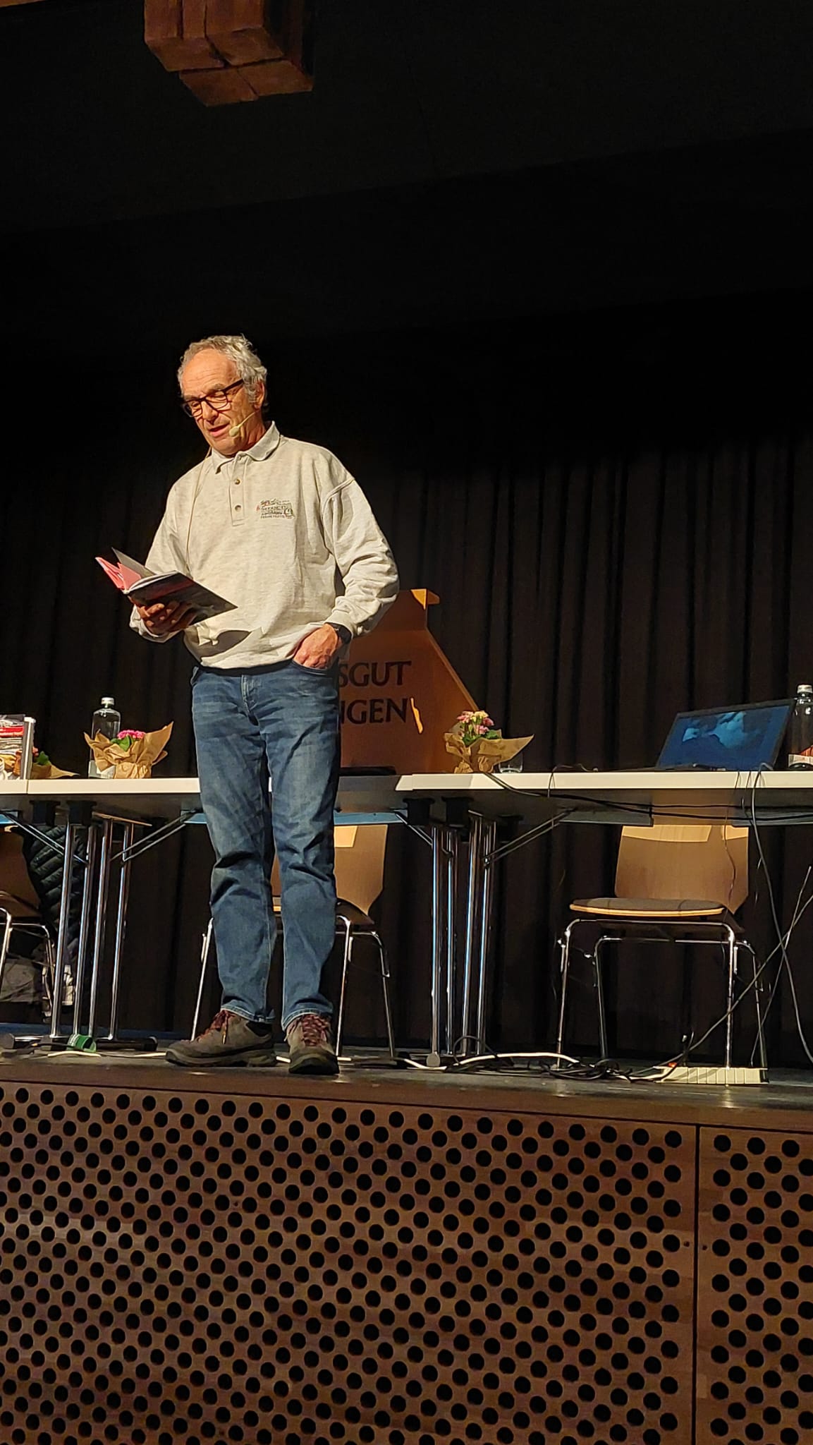 Unter diesem Titel begann unser Nachmittagsprogramm. Mit viel Witz und spannenden Anekdoten schilderte uns Bernhard Winkler vom Alltag, den er in der Fründenhütte oberhalb von Kandersteg erlebte. Wir konnten oft schmunzeln, manchmal regte uns Bernhard jedoch zum Nachdenken an. Er las auch Geschichten aus seinem Buch vor, das während der Corona-Zeit entstand. Alles wurde mit seinen schönen Bildern untermalt. So verging die Zeit im Nu!